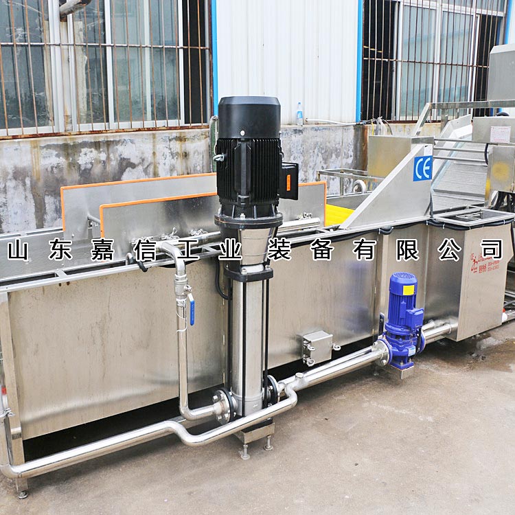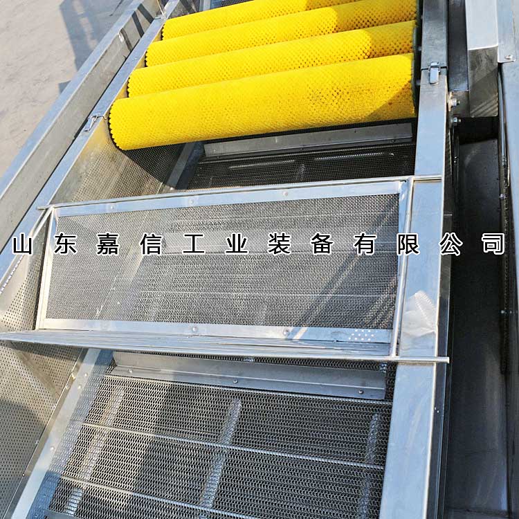6、進(jìn)料端裝有前推裝置,角度可調(diào),使物料在槽體內(nèi)形成對流,可將產(chǎn)品清洗的更干凈,產(chǎn)品運(yùn)行速度加快。