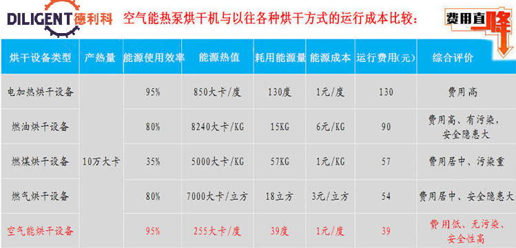 設(shè)備只需消耗少量的電能,就可以在空氣中吸收大量的熱量,耗電量僅為電加熱器的1/4;同燃煤、油、燃?xì)夂娓蓹C(jī)相比,可節(jié)省70%左右的運(yùn)行費(fèi)用。1度電等于4度電。