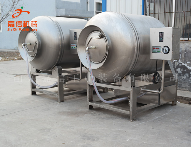 真空滾揉機(jī)是在真空狀態(tài)下,利用物理沖擊的原理,讓肉在滾筒內(nèi)上下翻動(dòng),相互撞擊、摔打,達(dá)到按摩、腌漬作用,使肉均勻的吸收腌漬,提高肉的結(jié)著力及產(chǎn)品的彈性;本機(jī)具有肺呼吸功能,讓產(chǎn)品在滾筒內(nèi)膨脹、縮小了往復(fù)運(yùn)動(dòng),改善了肉組織的結(jié)構(gòu),提高了切面效果,增加了出品率??梢栽鰪?qiáng)保水性,改善產(chǎn)品的內(nèi)部結(jié)構(gòu)。