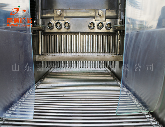 本機(jī)采用不銹鋼材料制作,設(shè)計(jì)合理。送肉鏈條可全盤(pán)托出,清洗方便,針頭排列為單針單管,設(shè)有自動(dòng)保護(hù)裝置,當(dāng)注射針頭碰到硬物時(shí),注射針自動(dòng)彈起,不受損壞,真正達(dá)到了注射的肉無(wú)死角。