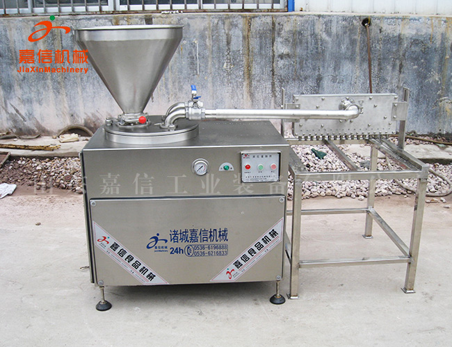 該機廣泛適用各種腸類制品的灌制。尤其對較干的料餡相對其他灌腸機效果更佳。該機上部設(shè)有貯料斗、碟形閥,可實現(xiàn)不掀蓋連續(xù)灌制,提高了工作效率。