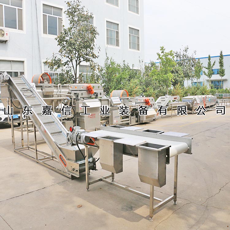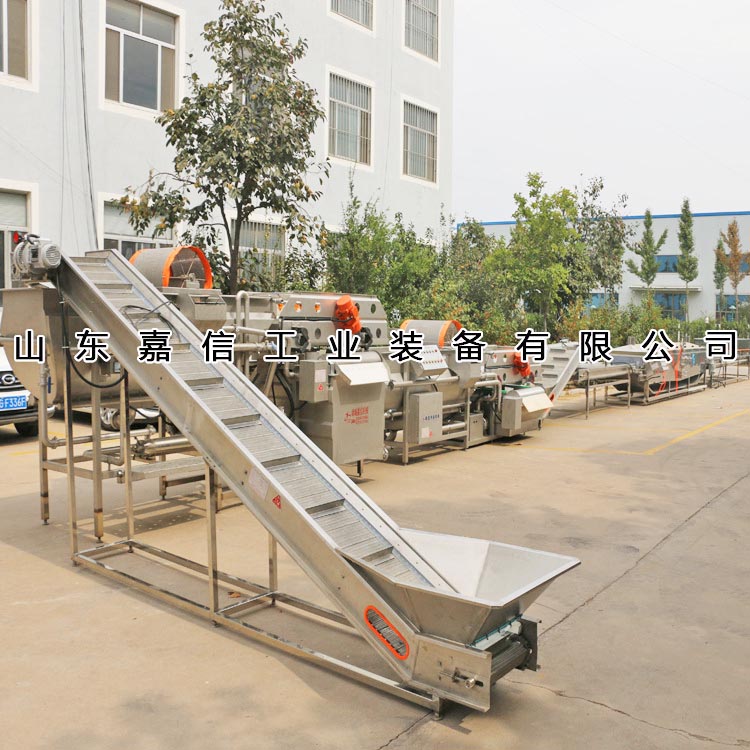 該流水線由切絲機(jī)、輸送機(jī)、清洗機(jī)、脫水機(jī)、烘干機(jī)等設(shè)備組成,主要用于海帶或根莖類蔬菜的切割、清洗、脫水及烘干工作。